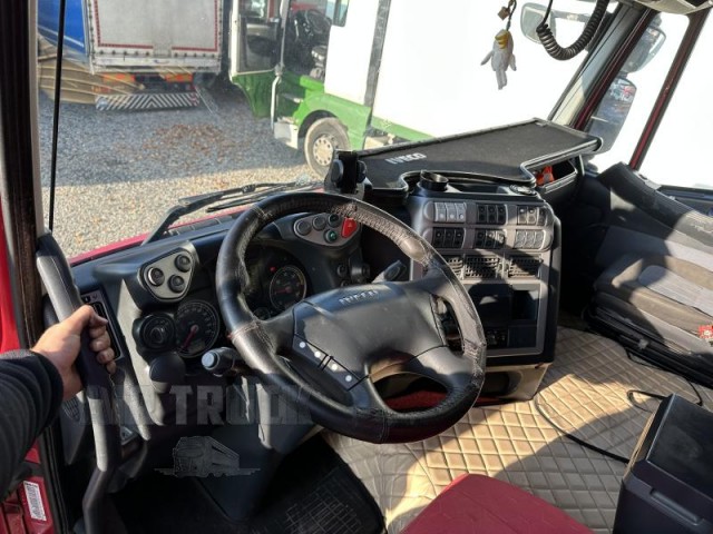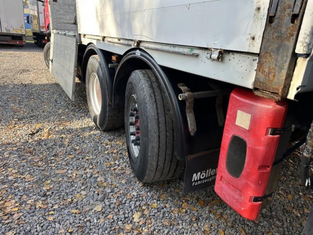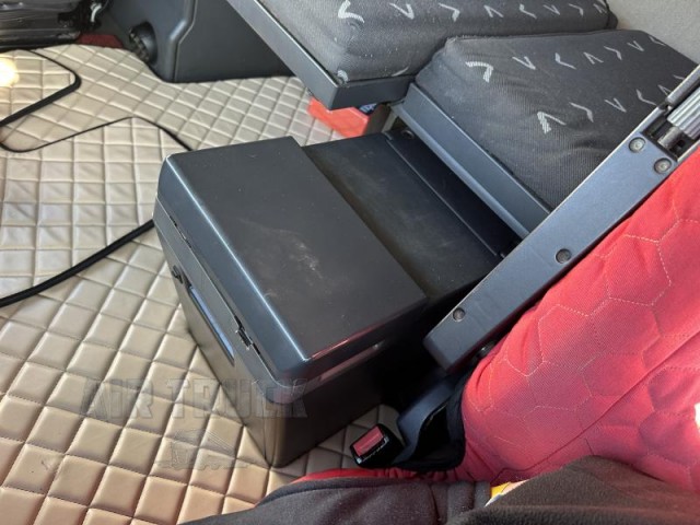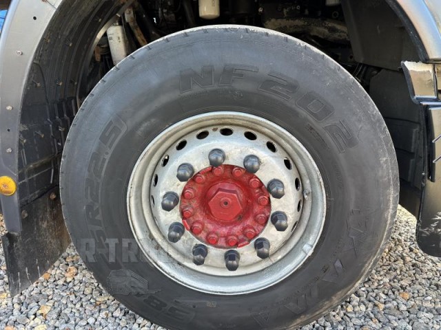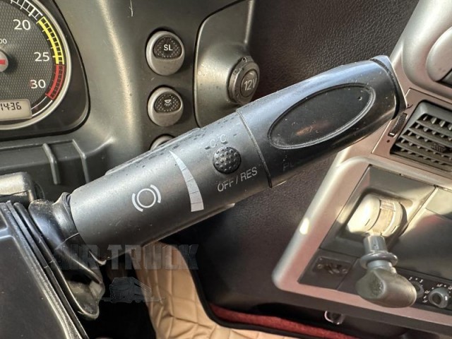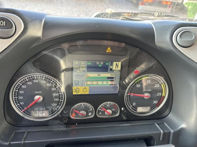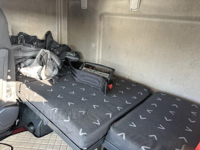 Výbava : aut. převodovka,ABS,protiprokluzový systém kol (ASR),regulace výšky podvozku,tažné zařízení,posilovač řízení,man. klimatizace,nezávislé topení,tempomat,plní 'EURO V',AdBlue,palubní počítač,multifunkční volant,el. přední okna,střešní šíbr el.,imobilizér,vyhřívaná sedadla,výškově nastavitelná sedadla,výškově nastavitelné sedadlo řidiče,polohovací sedadla,mlhovky,autorádio,CD přehrávač,venkovní teploměr,vyhřívaná zrcátka,autochladnička,střešní okno,CB vysílačka,pohon 6x2,uzávěrka diferenciálu,pérování vzduch,dvojitá nádrž do 800l nafty,závěsné zařízení,kabina dlouhá,kabina vysoká,2 lůžka,tachograf,motorová brzda