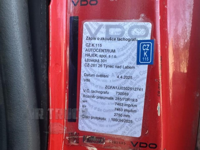 | Truck equipment: | manuální převodovka,8 rychlostních stupňů,ABS,tažné zařízení,posilovač řízení,tempomat,plní 'EURO IV',AdBlue,palubní počítač,nastavitelný volant,el. okna,el. přední okna,el. zrcátka,imobilizér,alarm,výškově nastavitelná sedadla,výškově nastavitelné sedadlo řidiče,otáčkoměr,autorádio,CD přehrávač,vyhřívaná zrcátka,vnitřní teploměr,pohon 4x2,uzávěrka diferenciálu,pérování vzduch,kabina krátká,kabina nízká,tachograf,motorová brzda |