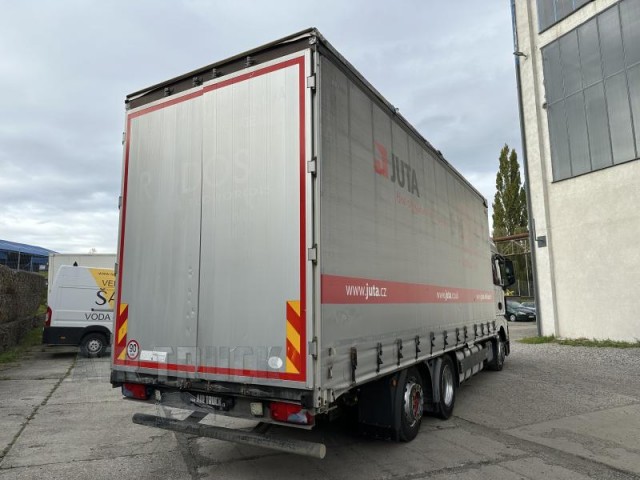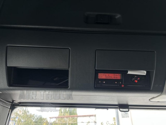 Výbava : manuální převodovka,8 rychlostních stupňů,ABS,stabilizace podvozku (ESP),protiprokluzový systém kol (ASR),regulace výšky podvozku,tažné zařízení,posilovač řízení,aut. klimatizace,nezávislé topení,tempomat,plní 'EURO V',AdBlue,palubní počítač,nastavitelný volant,multifunkční volant,el. okna,el. zrcátka,imobilizér,alarm,centrální zamykání,výškově nastavitelné sedadlo řidiče,mlhovky,AUX,autorádio,venkovní teploměr,vyhřívaná zrcátka,střešní okno,střešní spoiler,CB vysílačka,pohon 6x2,uzávěrka diferenciálu,pérování vzduch,kabina dlouhá,kabina vysoká,2 lůžka,tachograf,motorová brzda