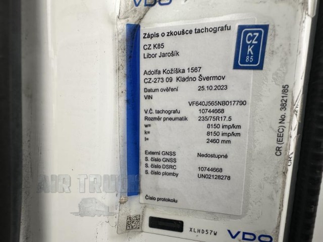 | Truck equipment: | aut. převodovka,6 rychlostních stupňů,airbag řidiče,ABS,protiprokluzový systém kol (ASR),regulace výšky podvozku,regulace tuhosti podvozku,posilovač řízení,man. klimatizace,tempomat,palubní počítač,nastavitelný volant,multifunkční volant,el. zrcátka,imobilizér,centrál dálkový,centrální zamykání,výškově nastavitelná sedadla,přední světla LED,autorádio,venkovní teploměr,vyhřívaná zrcátka,střešní okno,tachograf |