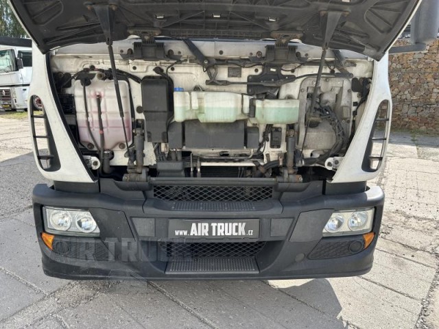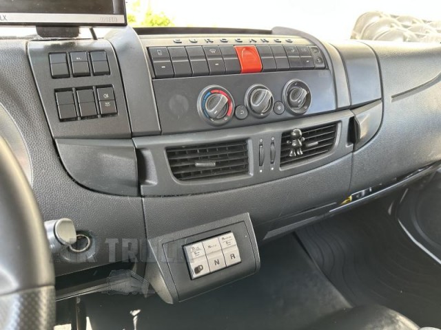 Výbava : aut. převodovka,6 rychlostních stupňů,ABS,protiprokluzový systém kol (ASR),posilovač řízení,man. klimatizace,tempomat,plní 'EURO V',AdBlue,palubní počítač,nastavitelný volant,el. přední okna,el. zrcátka,imobilizér,centrál dálkový,centrální zamykání,vyhřívaná sedadla,výškově nastavitelná sedadla,výškově nastavitelné sedadlo řidiče,otáčkoměr,autorádio,venkovní teploměr,vyhřívaná zrcátka,střešní spoiler,boční spoilery,vnitřní teploměr,pohon 4x2,uzávěrka diferenciálu,pérování ocel/vzduch,jednoduchá nádrž do 400l nafty,kabina střední,kabina nízká,tachograf,motorová brzda