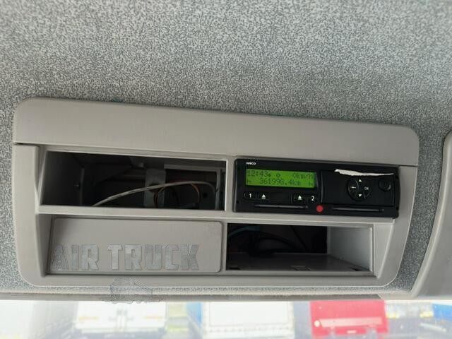 | Výbava vozidla: | manuální převodovka,6 rychlostních stupňů,ABS,stabilizace podvozku (ESP),protiprokluzový systém kol (ASR),posilovač řízení,man. klimatizace,tempomat,plní 'EURO VI',AdBlue,palubní počítač,nastavitelný volant,el. okna,el. zrcátka,imobilizér,výškově nastavitelné sedadlo řidiče,polohovací sedadla,otáčkoměr,autorádio,CD přehrávač,venkovní teploměr,vyhřívaná zrcátka,vnitřní teploměr,pohon 4x2,uzávěrka diferenciálu,pérování ocel,jednoduchá nádrž do 400l nafty,kabina krátká,kabina nízká,tachograf,motorová brzda |